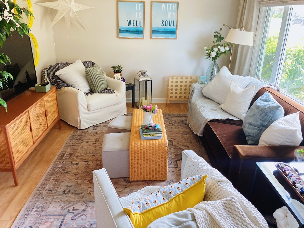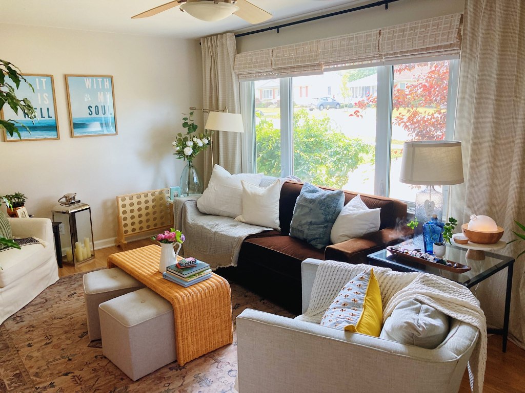 Summer is by far my favorite season. Sunshine, fresh air, blooming flowers, and warm nights- I just love it all! One challenge with this time of year is creating a cozy home while keeping it fresh and bright, in tune with the season. Today I will share 5 easy tips to create a cozy and fresh living room for summer.