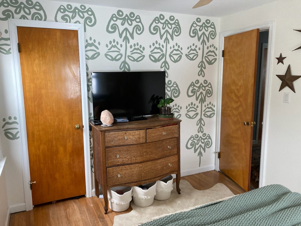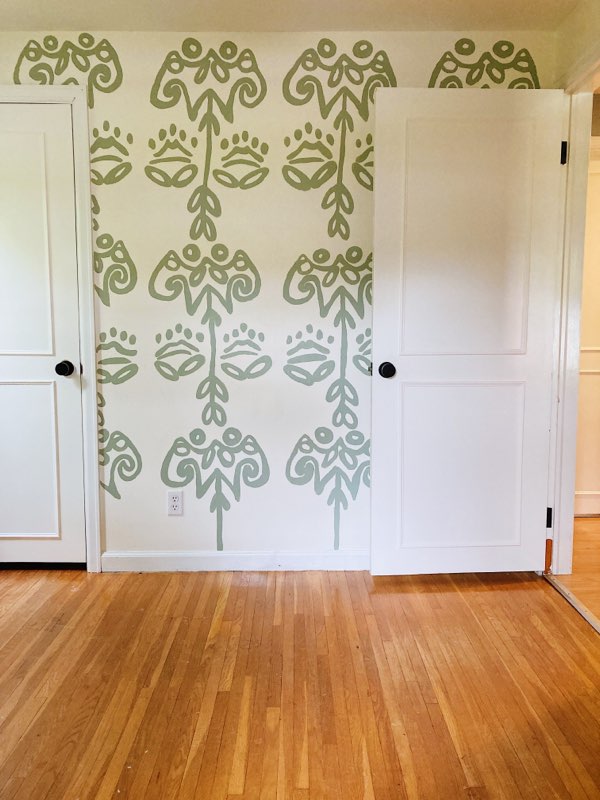 In another room of my house I stenciled a different design. This process was much quicker! The larger the scale and the less colors involved the faster it will go.