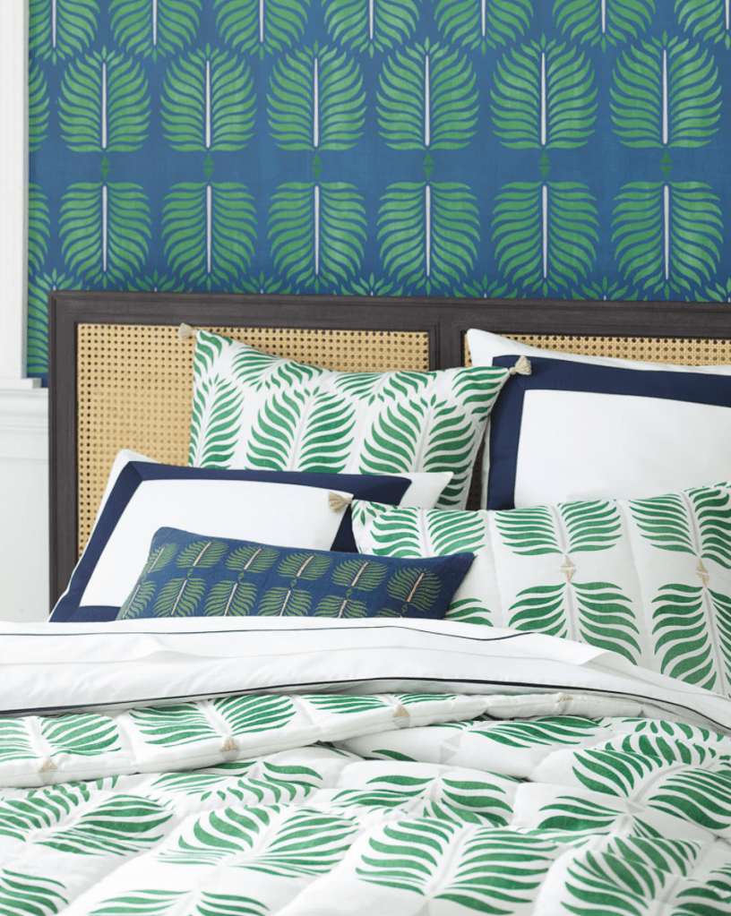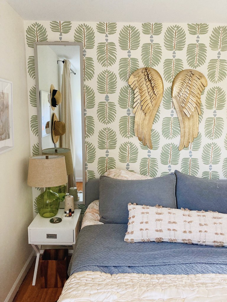 Adding an accent wall is one of my favorite tools when working on a room that “just needs something” to feel complete. A wood element like board and batten or ship lap can add texture and warmth while a paper can add color and whimsy. The opportunities are endless! I have spent hours searching for wallpapers and dreaming of places to use them, so when I came across this wallpaper by Serena and Lily I knew just the place for it. Only problem- it was way out of budget! No worries, here, I will walk you through the process of how I recreate my favorite papers, by hand, for free.