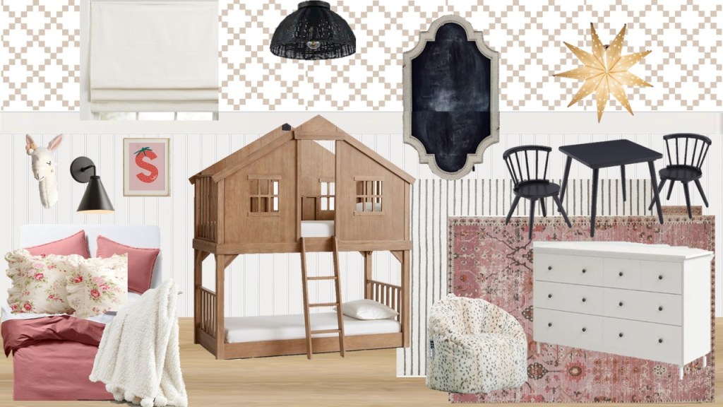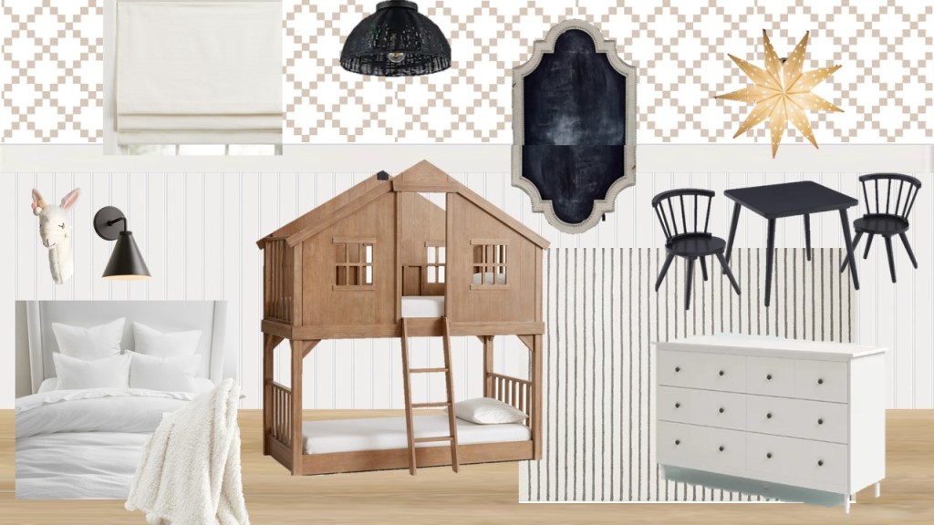 The first mood board I am sharing shows the neutral base I am starting with and the second one shows how I will be incorporating some girly elements for her. Just a few additions can totally transform a space!