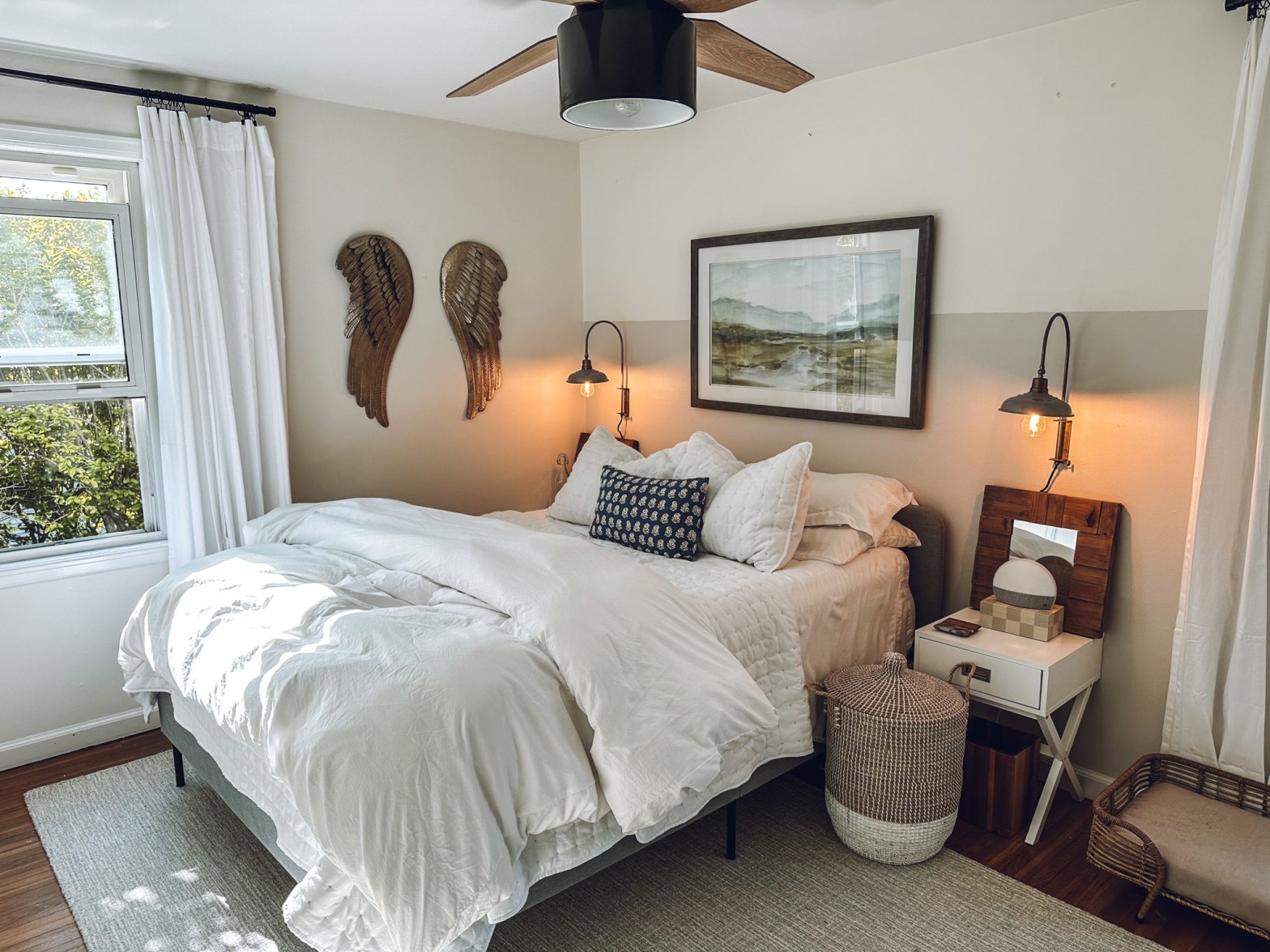 My most read and shared blog post to date has been where I explained how to recreate your favorite wallpapers for free (linked here). The example I showed was how I did this in our primary bedroom. I recently painted over that mural and guess what – I couldn’t be happier with how it turnedContinue reading “Bedroom “Make-Under””